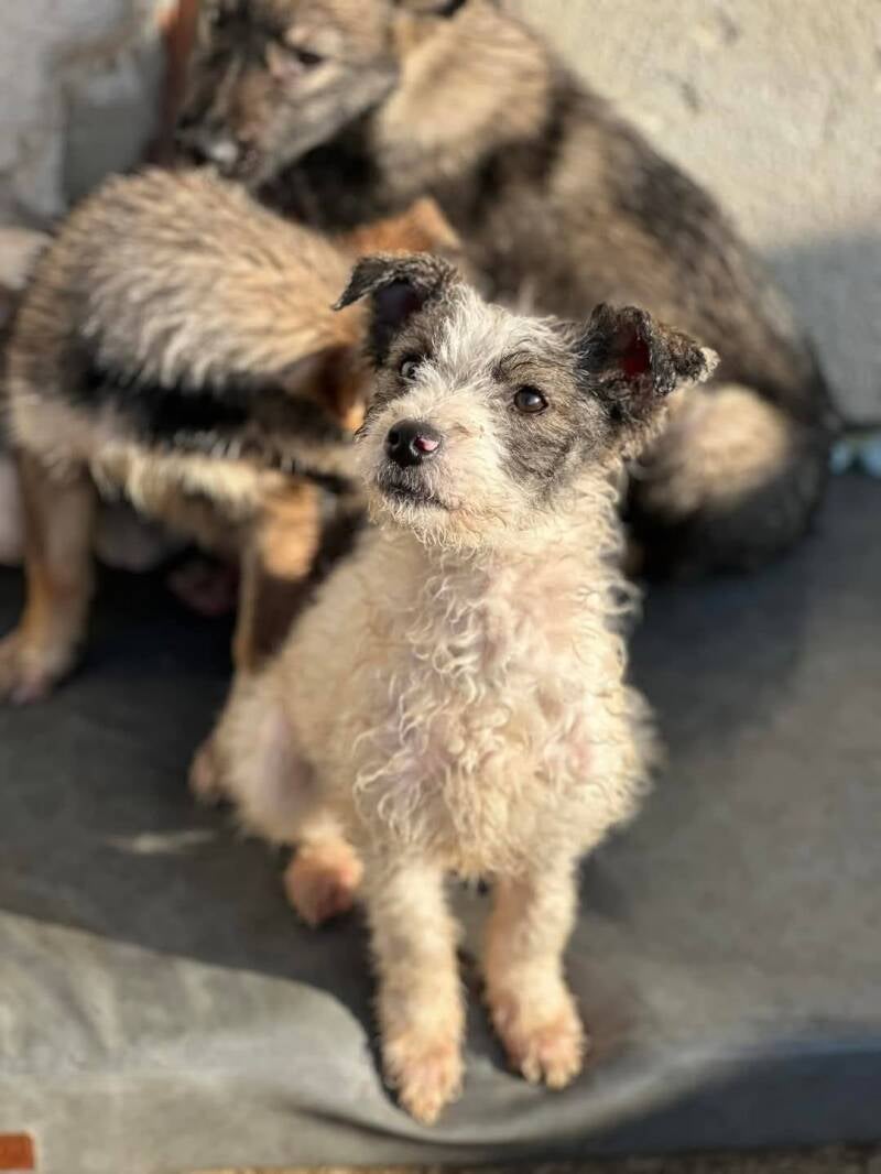 Mama werd aangetroffen door een voorbijganger, nadat zij met haar kindjes op straat werd gezet. Gelukkig kende deze passant Crina en nam contact met haar op. Crina redde dit lieve 3-tal van de straat en nu logeren zij binnen het warme kattenverblijf omdat de kennels te koud zijn voor deze kleine hummels. De hondjes zijn gecontroleerd door de dierenarts en in goede gezondheid. Zodra het vaccinatieschema is doorlopen, mogen de kleintjes uitvliegen en vertrekken naar een eigen familie.