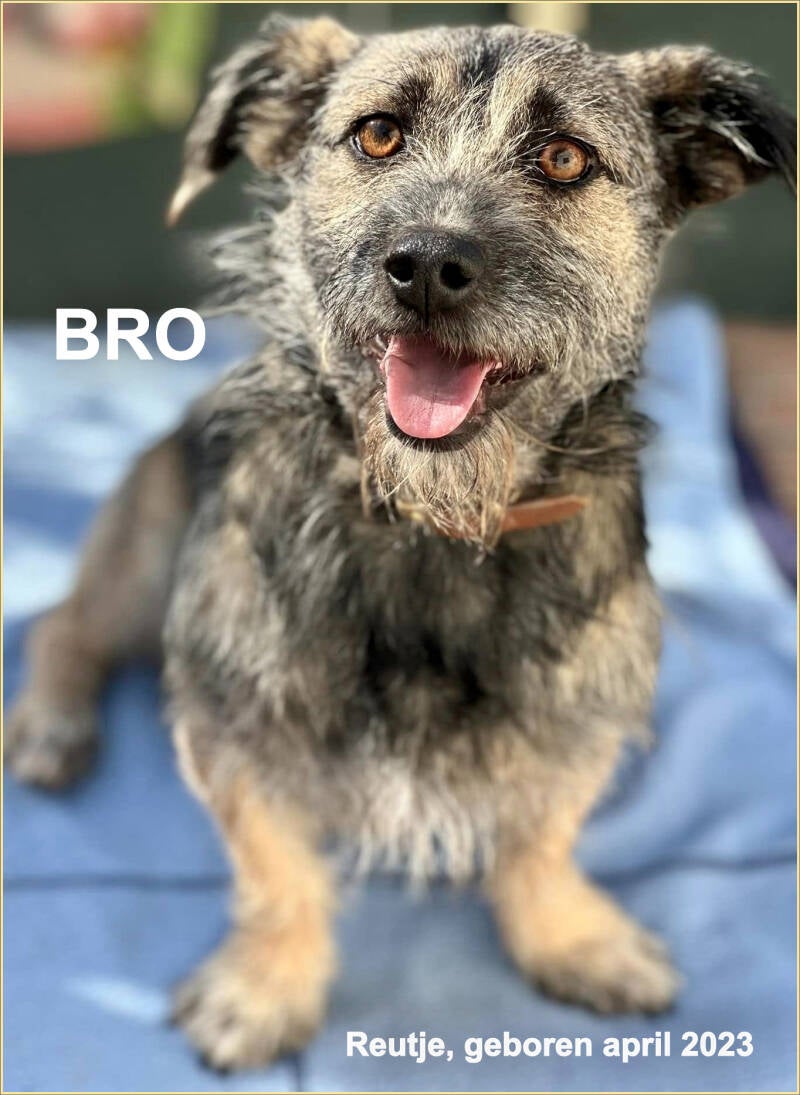 Bro is een lief guitig hondje waarbij het glas altijd 1/2 vol is. Bro heeft plezier in het leven, hij is mensgericht en vindt andere hondjes erg gezellig om mee te spelen.