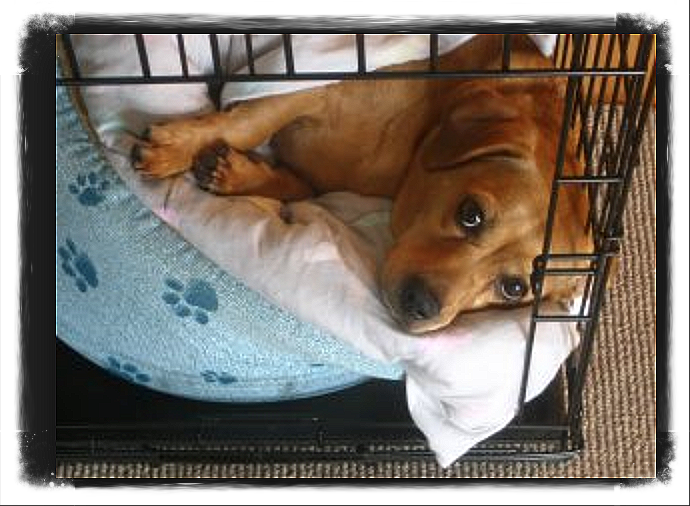 Daarom nooit forceren en zeker NIET de hond tijdens de eerste 3 a 4 weken opsluiten in de bench.