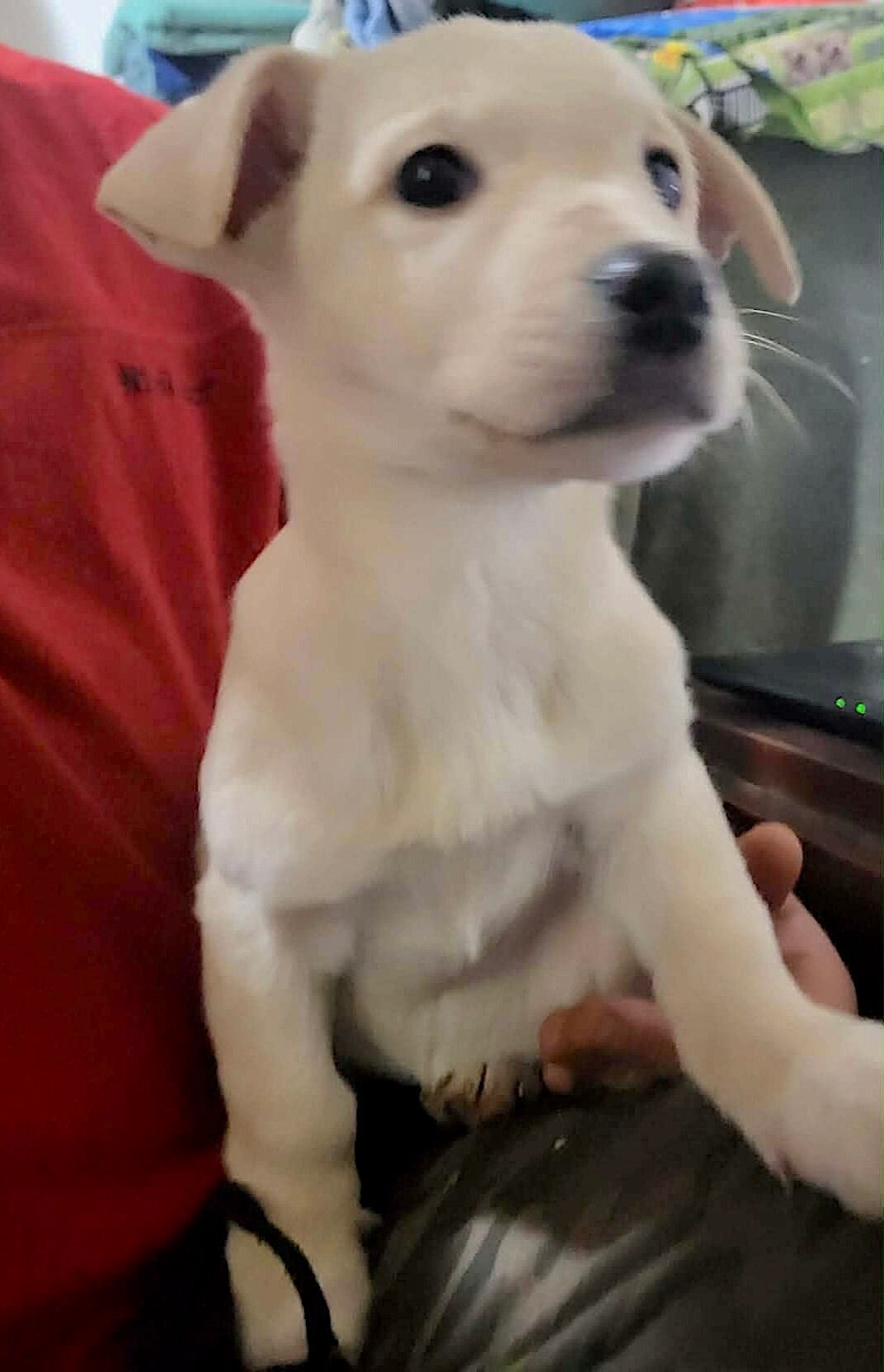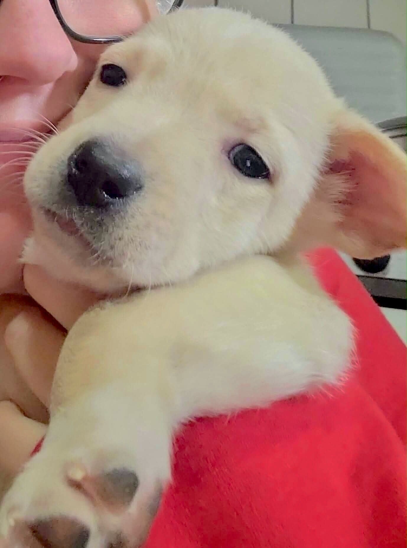 Yvette is samen met broertje John opgehaald door ons contact kabai bij een man die een noodoproep had geplaatsts voor 3 pupjes. Deze man had 3 pupjes gevonden langs de snelweg in de kou.