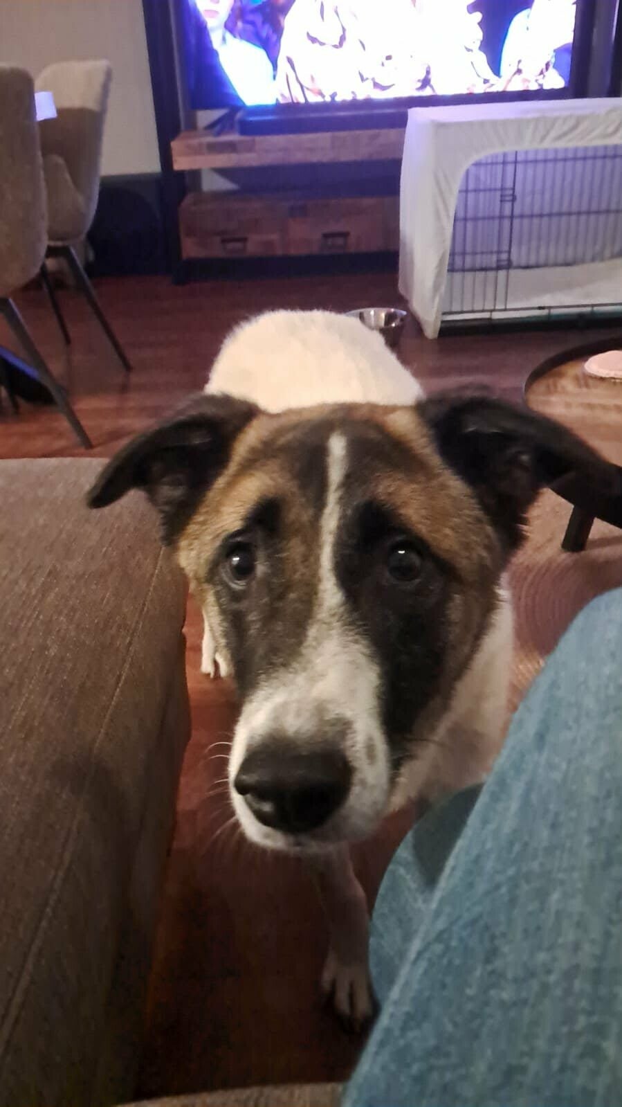 Wie valt op deze lieverd en beseft dat Cosmo een jonge hond is vanuit een andere situatie en tijd nodig heeft om te acclimatiseren binnen een nieuwe woonomgeving.