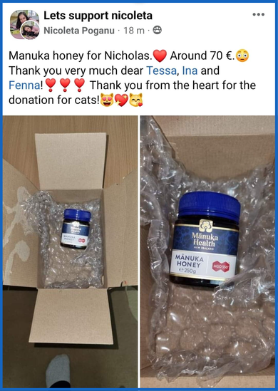 Ondertussen is er 300 euro overgemaakt naar Crina Maria en 100 euro overgemaakt naar Nicoleta