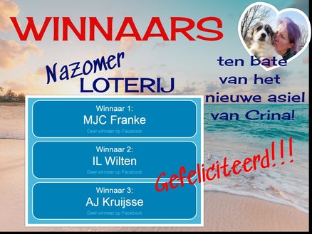 Om Crina te helpen met het financieren van een nieuw asiel, organiseren we een aantal loterijen. De eerste loterij was de "Nazomer loterij".