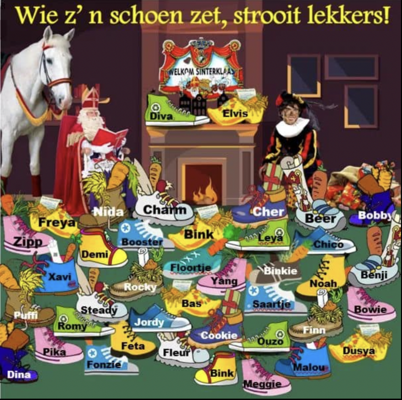 Dat er maar veel schoentjes bij de openhaard komen te staan!