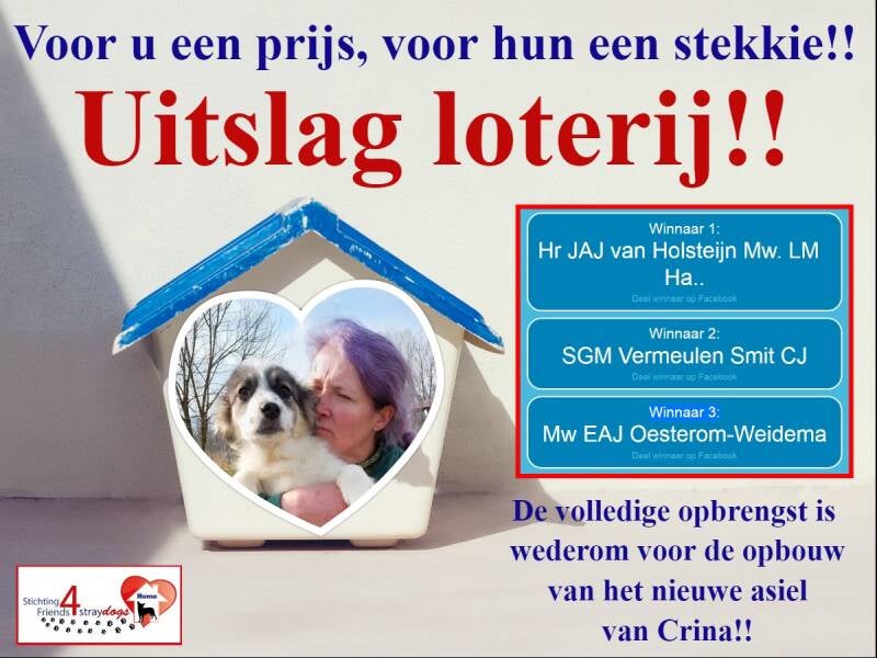 Ook de tweede loterij voor een bijdrage aan het nieuwe asiel van Crina was een groot succes.